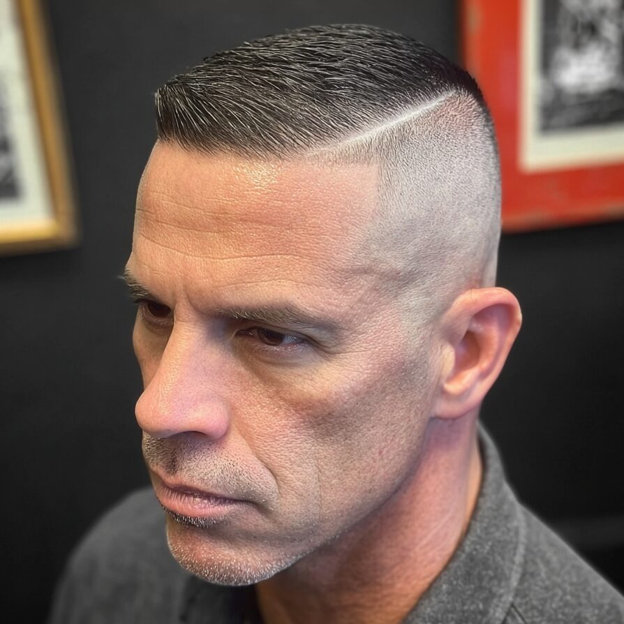 6. High and Tight con Hard Part (corte militar con raya rapada)