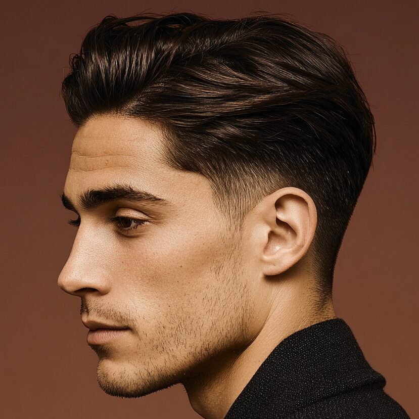 Cómo pedirlo: “Un drop fade que caiga hacia la nuca, limpio pero sin subir demasiado en la sien.”