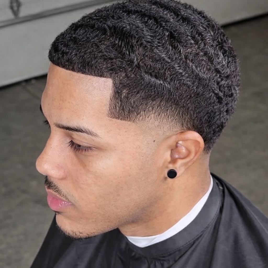 Drop Fade vs. Burst Fade: un drop fade sigue la curva natural de la cabeza, bajando ligeramente detrás de la oreja para crear una silueta más esculpida y fluida.