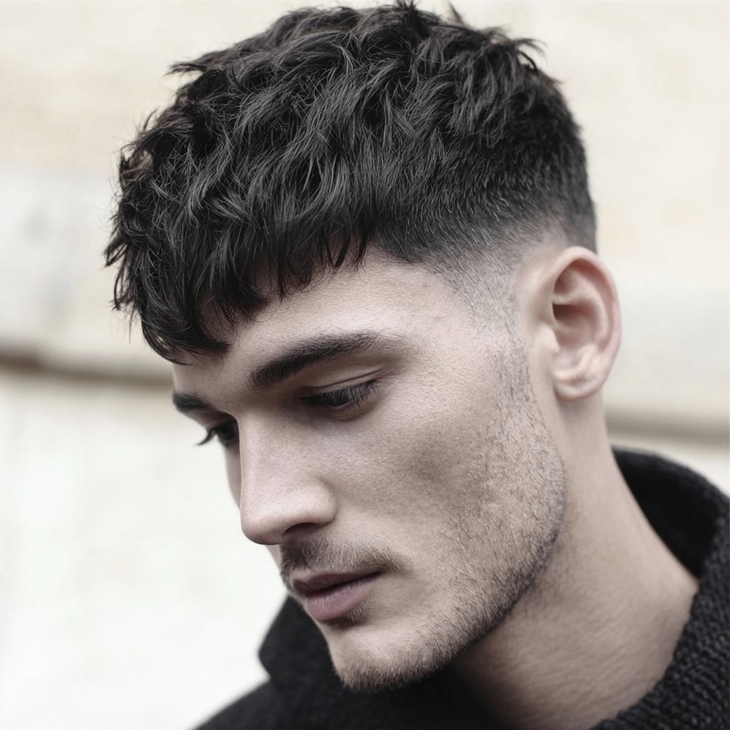 Crop / French Crop → Corto texturizado con flequillo: Parte superior corta con textura y flequillo natural hacia delante. Es el corte que más ha crecido en popularidad en los últimos cinco años.