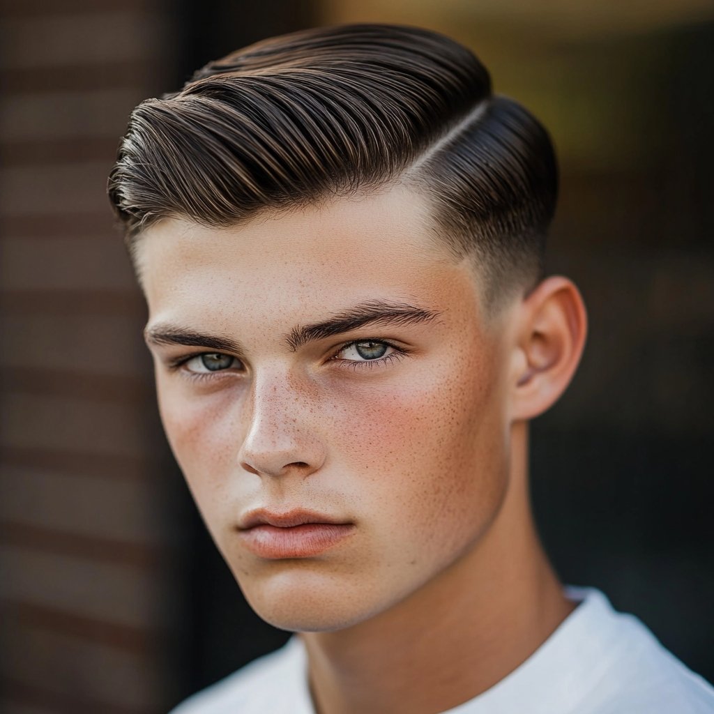 Style tip: Blow-dry the top back and slightly up for volume, then use a medium-hold pomade or styling cream to shape. This is one of the most reliable hair styles for teen boys who want something classic with modern edge.